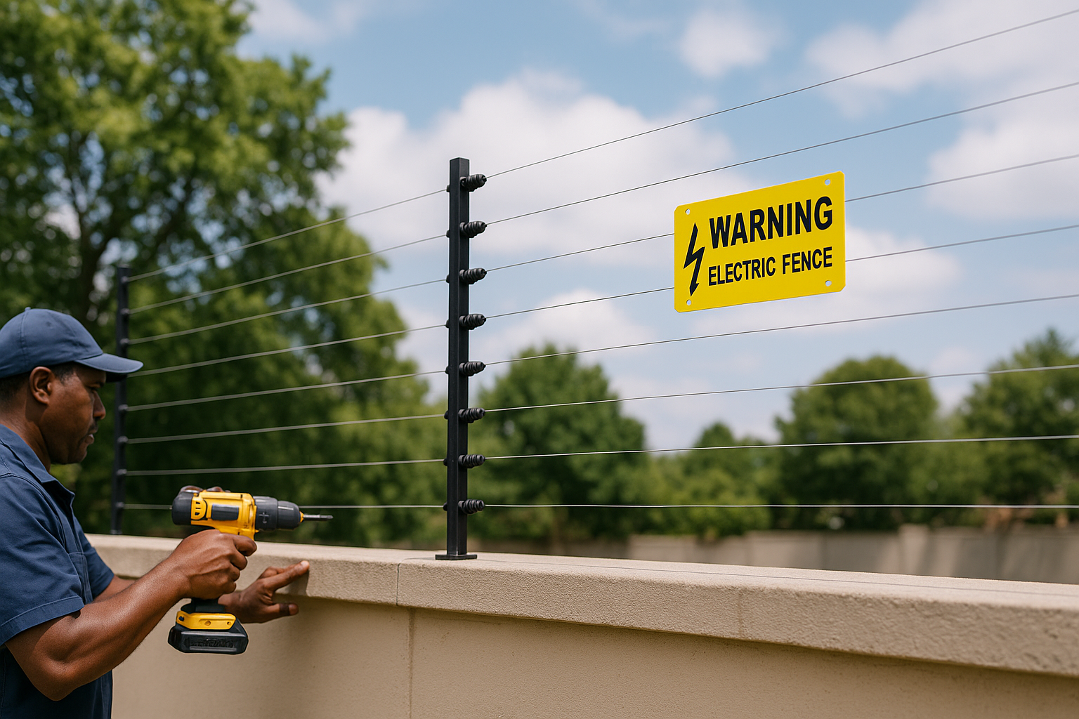 Full perimeter electric fencing installation for improved residential security.